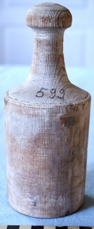 Flaskformen användes vid Berga glasbruk i Pörtom under 1800-talet. Flaskformen har senare donerats av syskonen Spjut den 31.5.1961 till Pörtom hembygdsförenings samlingar. Flaskformen är gjord i gran trä och är snidad av ett trästycke med en grop i bottnen.